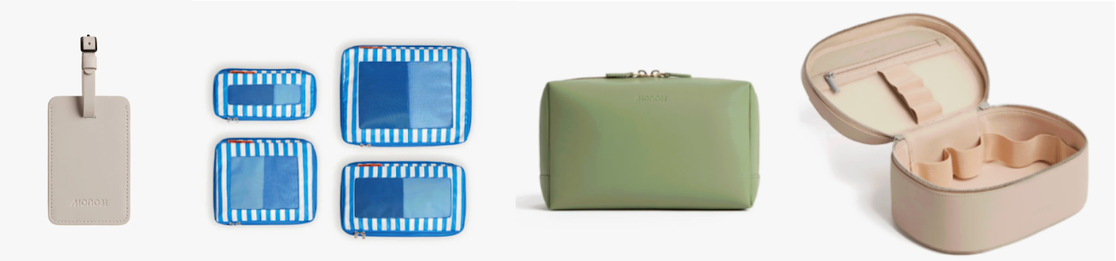 Packing accessories complete the system, reinforcing Monos’ belief that organization is a form of luxury. Compressible Packing Cubes help manage heavy knits and ski layers, maximizing space while keeping everything accessible. The Metro Toiletry and Cosmetic Cases provide structured storage for skincare and grooming essentials, ensuring that post-slope routines feel as considered as the rest of the journey. Even small details, like the sleek Luggage Tag, echo the brand’s “less but better” philosophy.